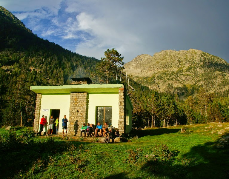 Llegamos al refugio libre de Puen de Corones, adonde llega la pista de Ballibierna y un autobús público, que esta esperando para el último viaje de bajada. Nos ha llovido un poquito y plantamos dos tiendas, más la individual de Ferran, ya que no cabemos todos en el refugio. El día despeja y la vista sobre las "culebras" de Ballibierna y de la Tuca de Culebras es de las más bonitas visiones del Pirineo.